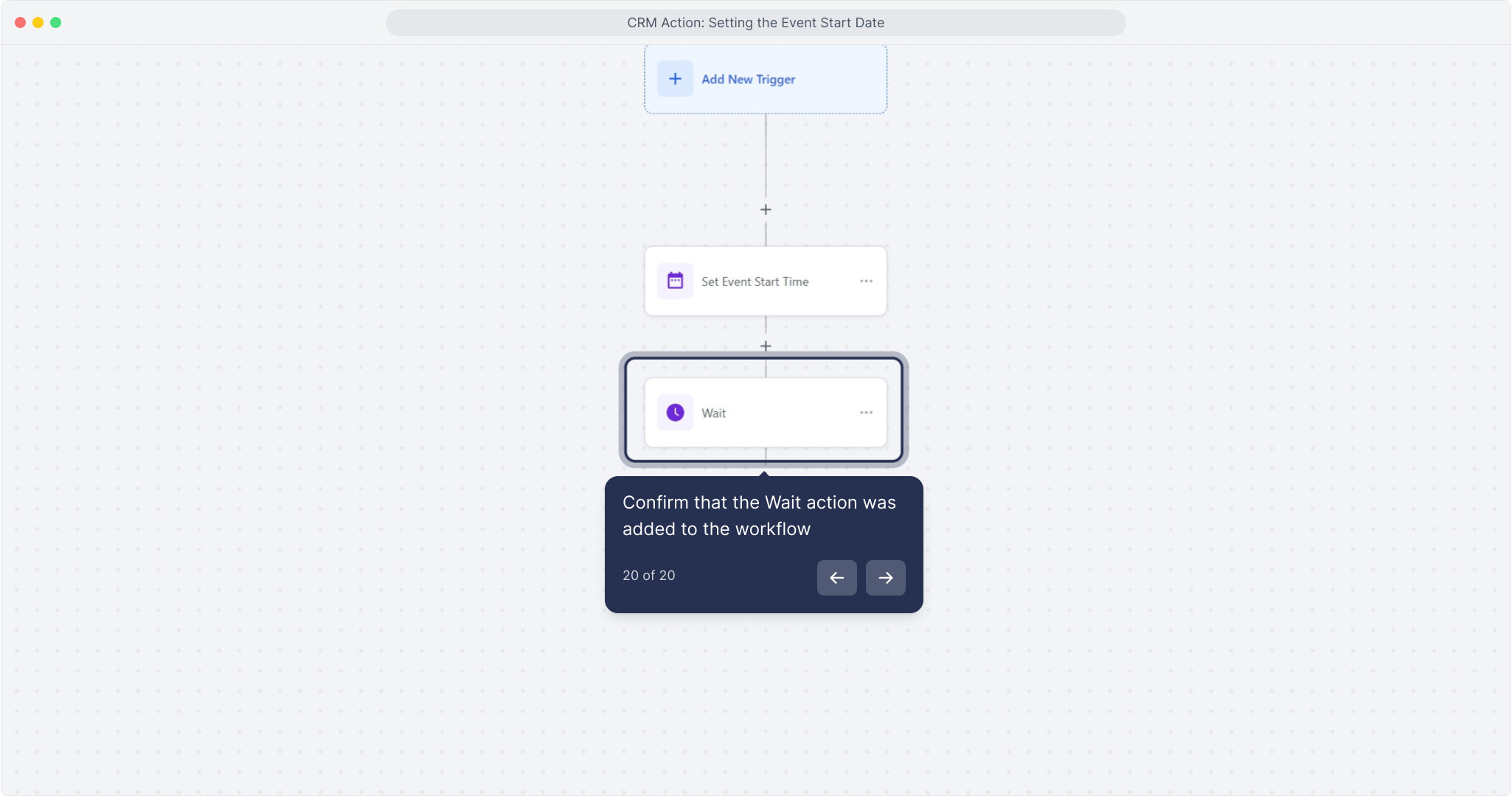 Once this action is activated, you can use 'Wait' steps in your workflow to pause execution until the specified event date. For example, you could schedule reminders to be sent a few days before the event or plan actions to occur a few days afterward.