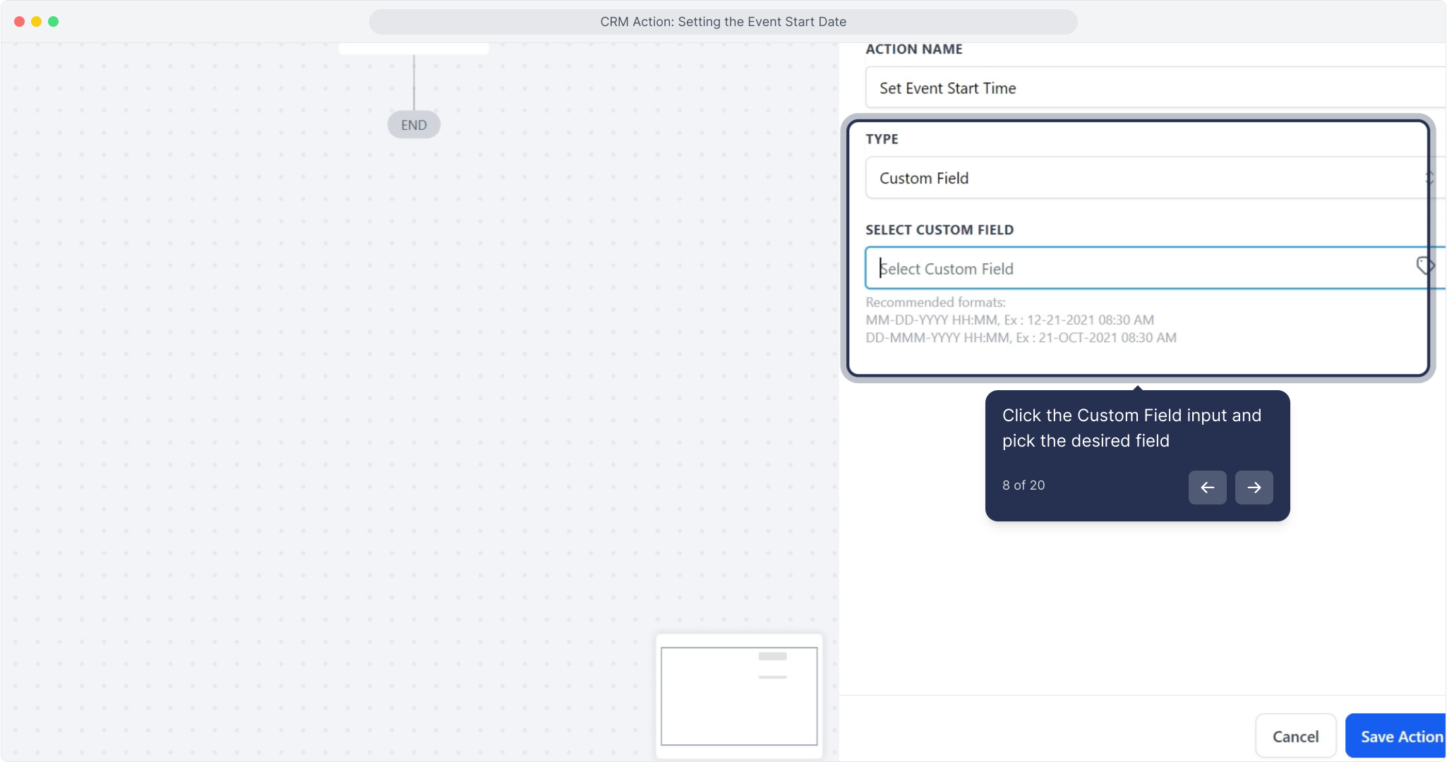 Important Note: The 'Set Event Start Date/Time' action supports various date and time formats. Here are some common examples:
