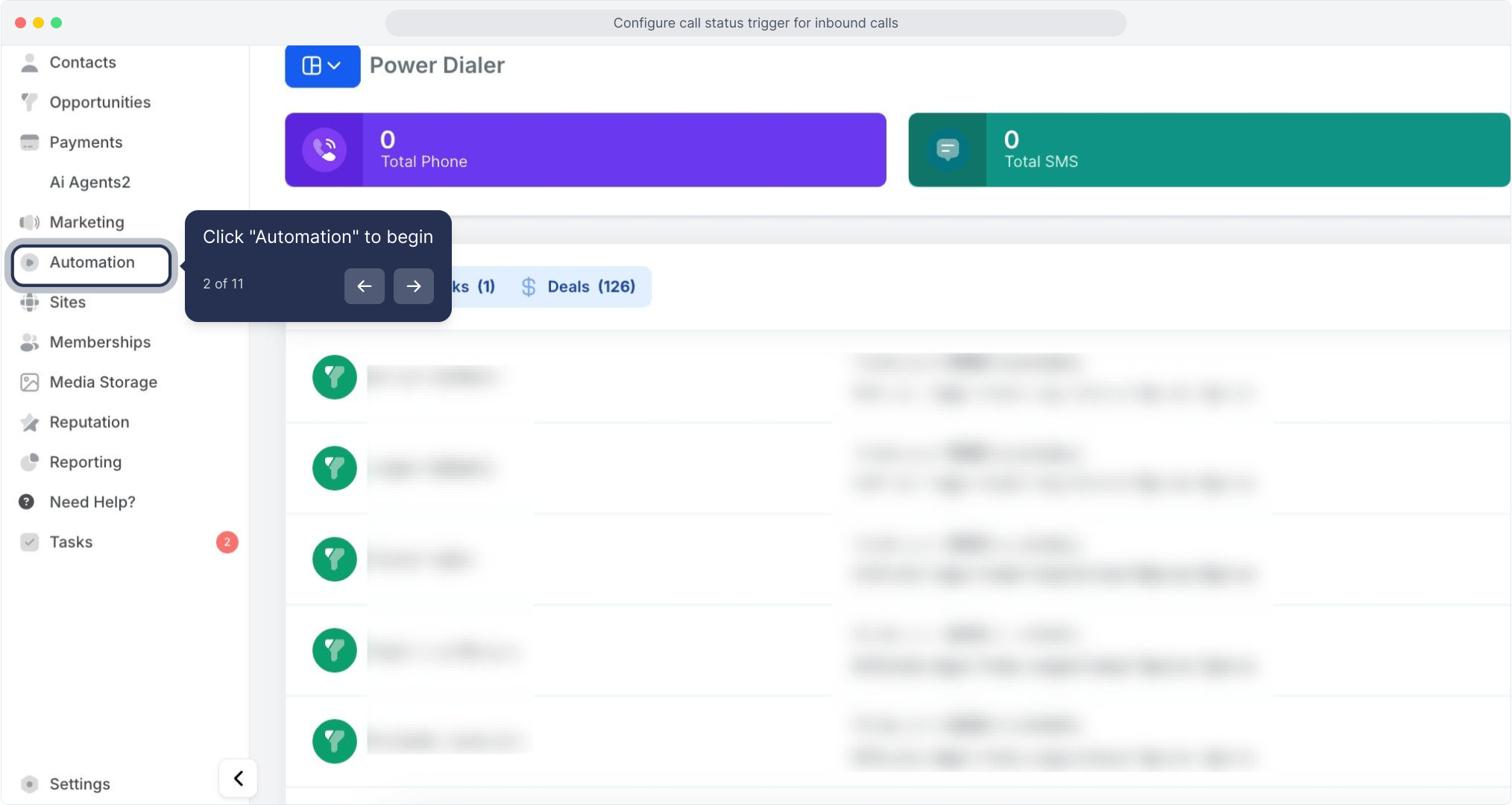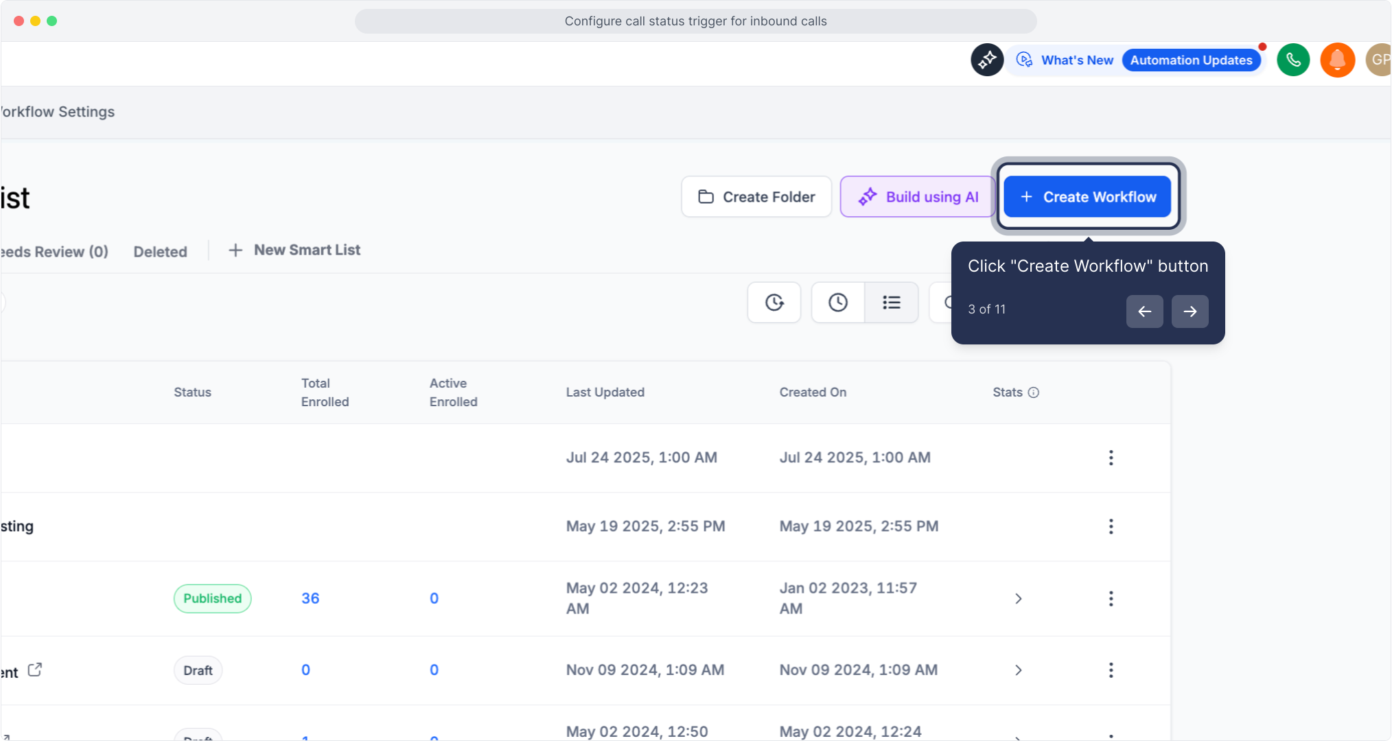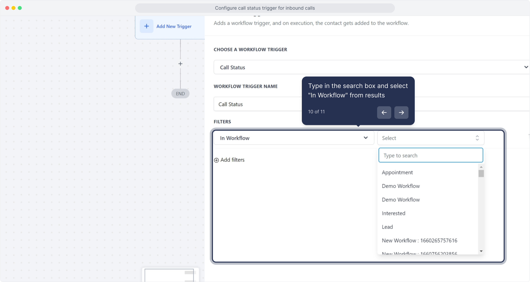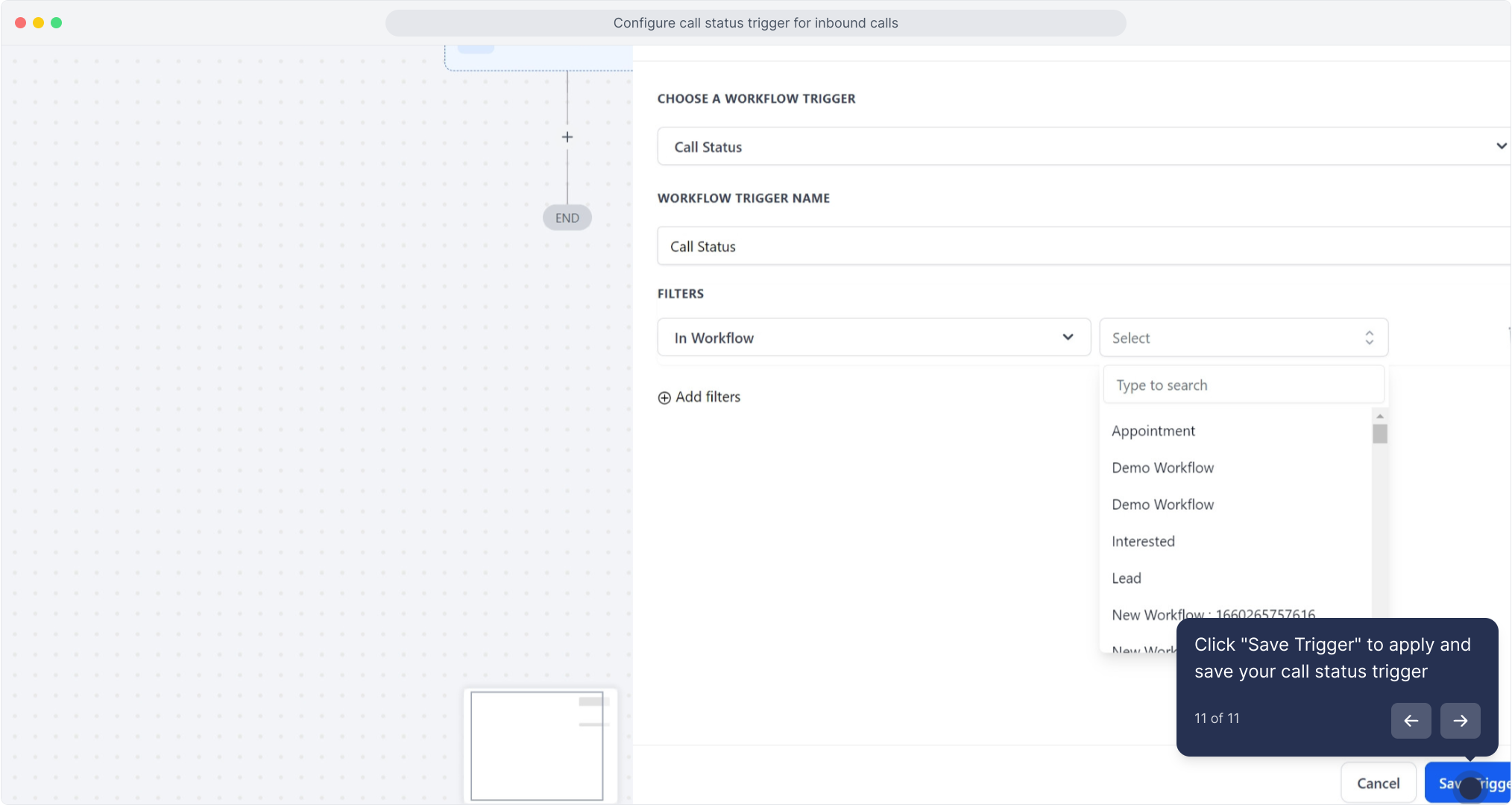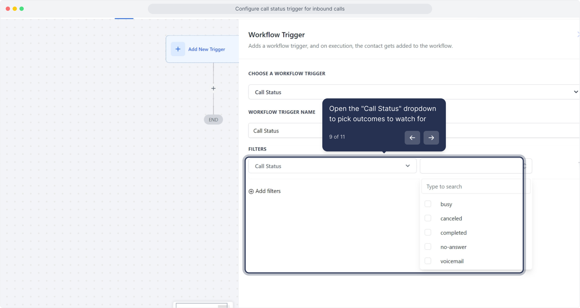 9. Open the "Call Status" dropdown to pick outcomes to watch for