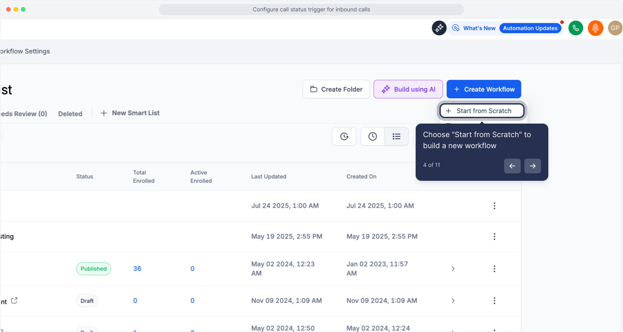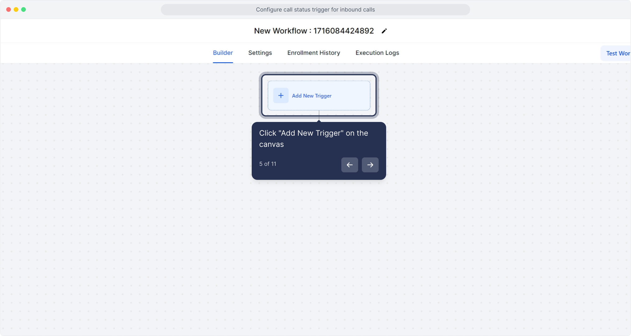 This feature lets you initiate calls from another workflow within the current one by selecting the external workflow you want to link to.